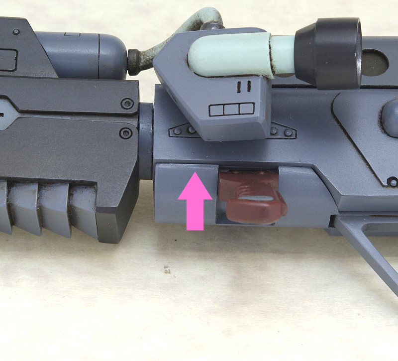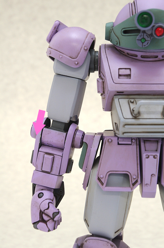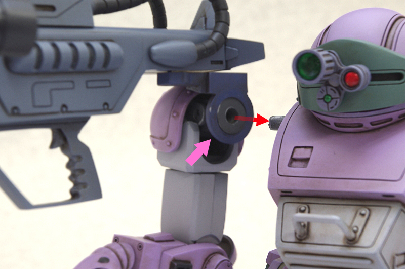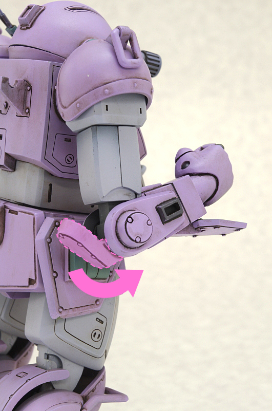 腕の接続時に肩に噛ませることで、ロッグガンの自重によるヘタリも防ぎ、しっかり安定してロッグガンを構える事ができるようになります。