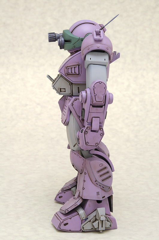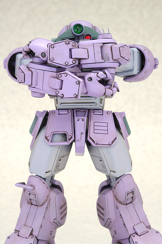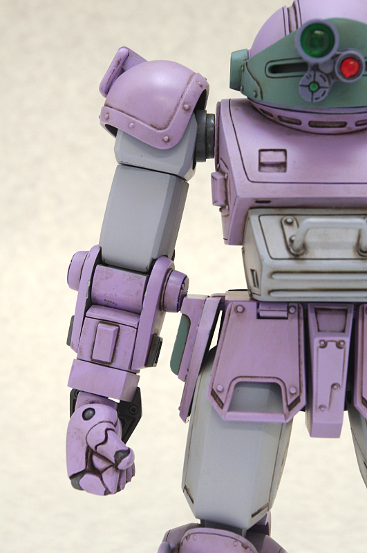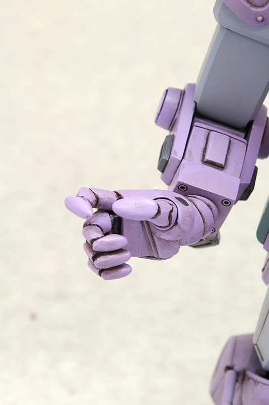このように、ロッグガンを持たせるために様々な工夫が施された『腕』ですが、その恩恵により可動範囲もスコープドッグ系にしては異例の広さに!腕組みなんかもお手の物!未だかつて腕組みをしたスコープドッグなんて見たことがあったでしょうか?独特の指の表情もいい味出しています。