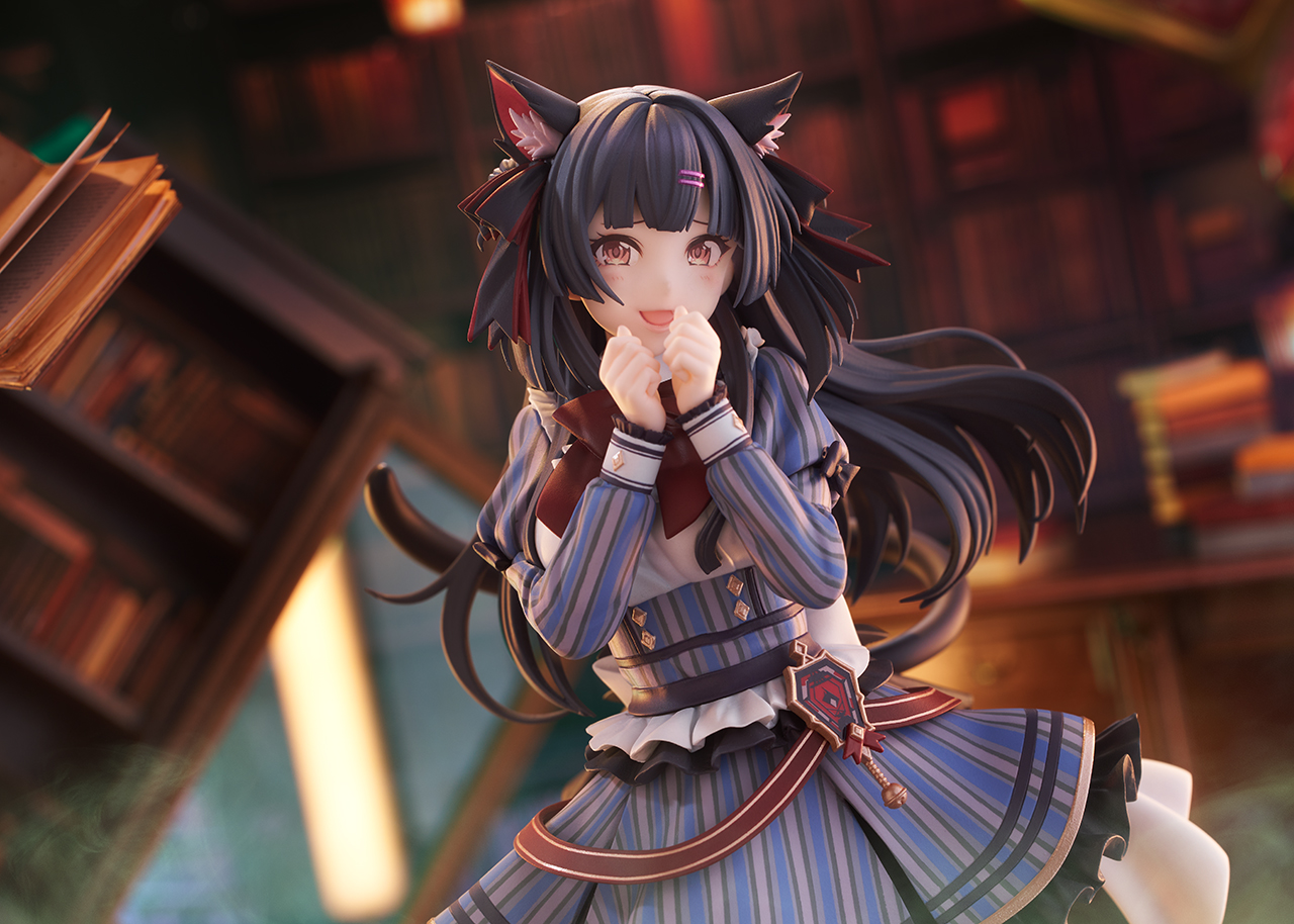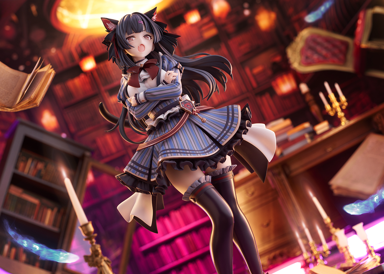 VaistarStudio様で撮影いただいた特写カットは、ゲーム内ハロウィンイベント「ゴシップ・キャンディ!-魔法の本とおかしな食べ物-」での舞台の一つ『図書館』をイメージして撮影をしていただきました。ハロウィンらしくポルターガイストっぽい背景・図書館が完全ジオラマで再現されていてとっても素敵です。本フィギュア付属の2種の表情的にも劇中での冬優子とのやり取りが思い浮かびますね。